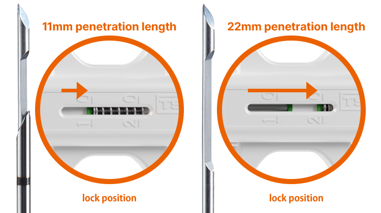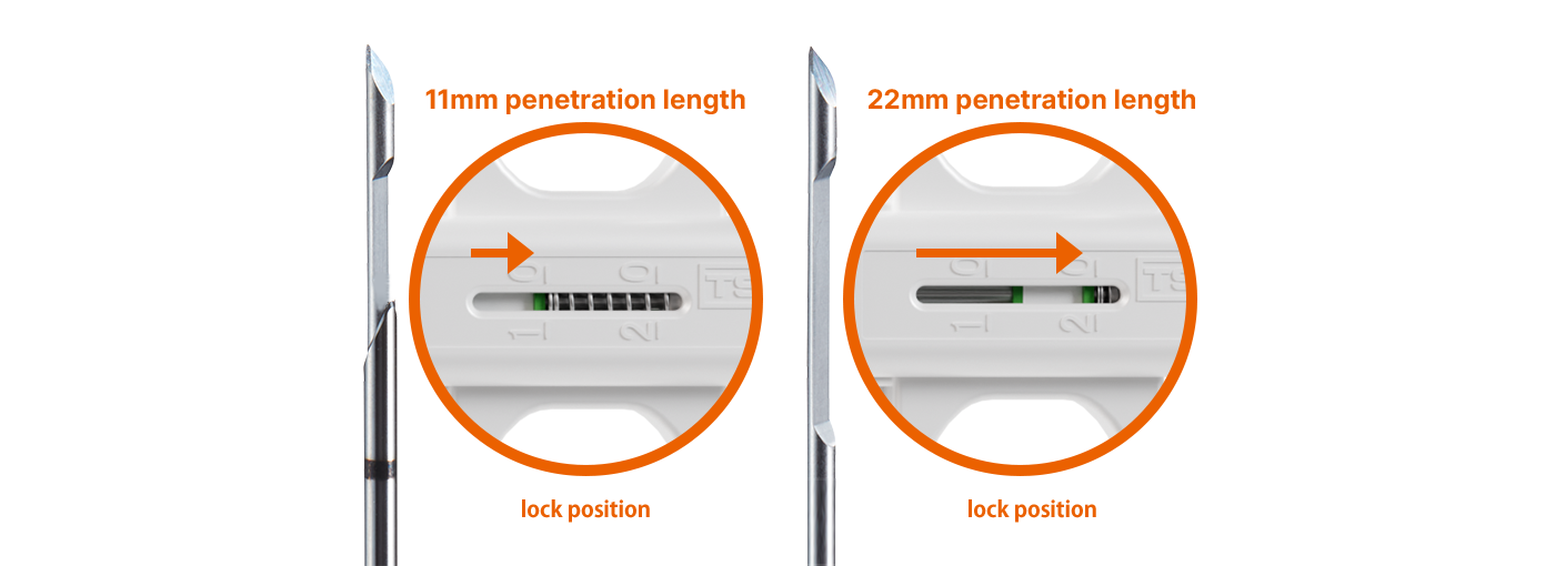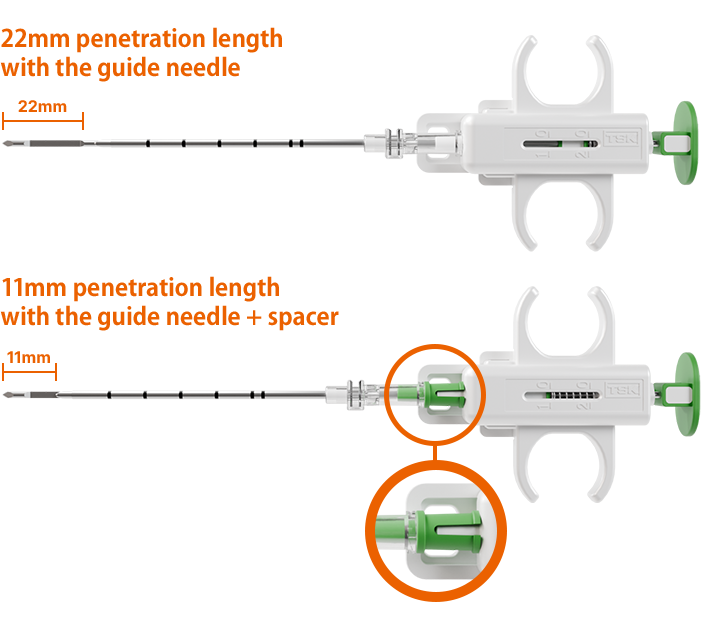 Compared to the conventional semi-automatic biopsy needle STARCUT,