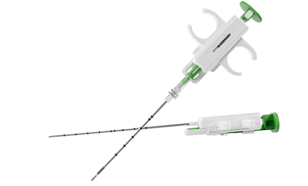 従来の半自動生検針スターカットに比べ、操作性や組織採取性が向上いたしました。