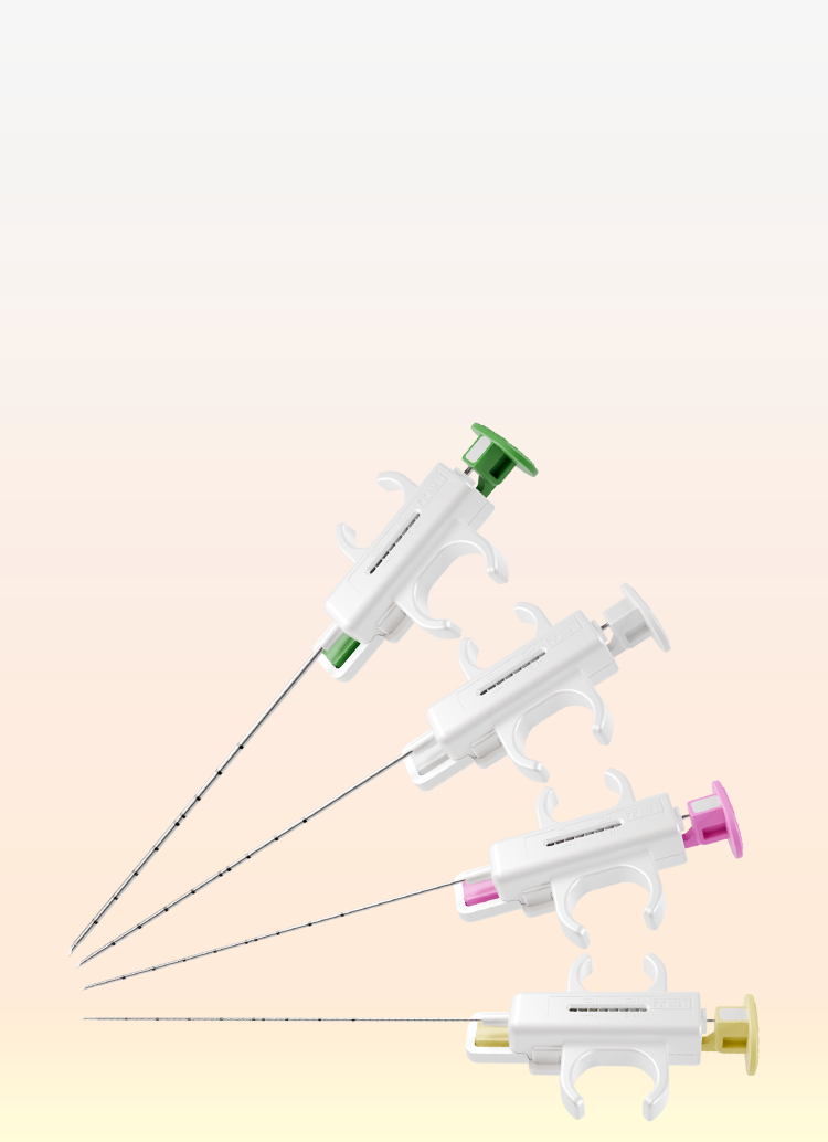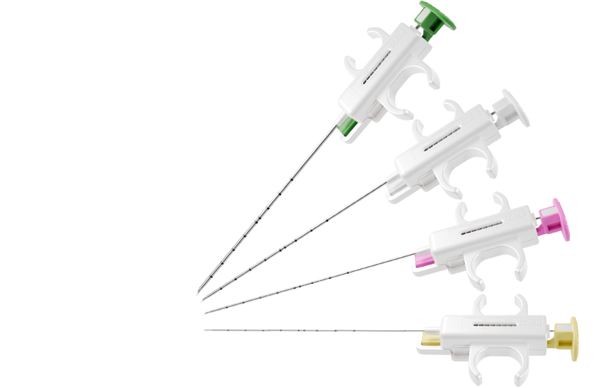 生検部位に応じたサイズを選択できるよう豊富にサイズラインナップを展開しております。